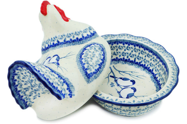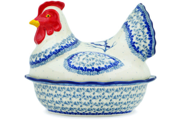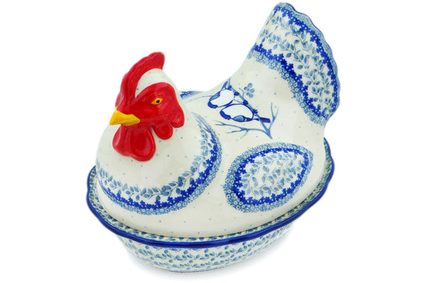 Hen Shaped Jar 9" Waiting Birds Theme UNIKAT