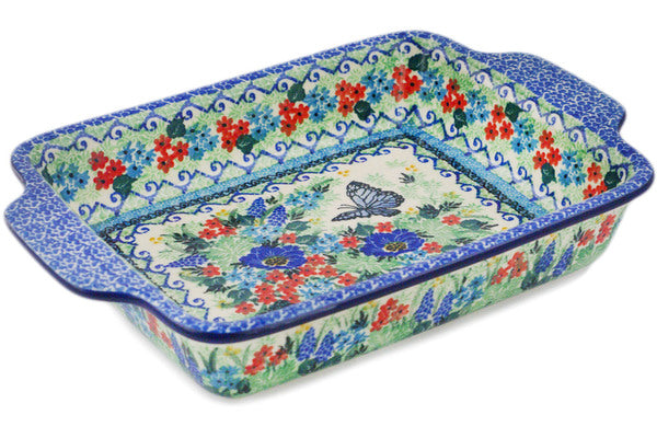 Rectangular Baker with Handles 9½-inch Mariposa Theme UNIKAT