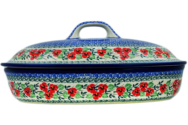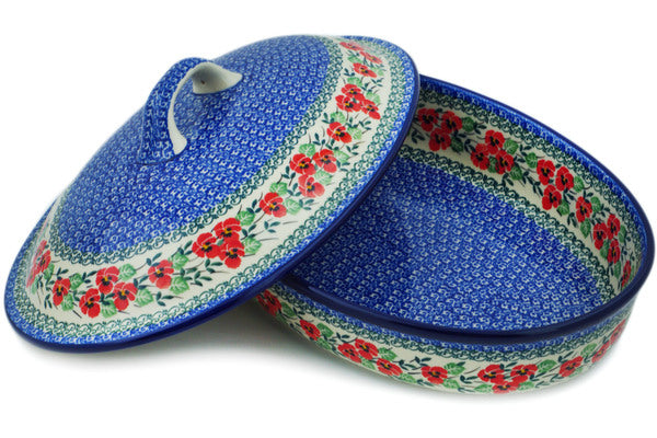 Baker with Cover 14" Red Pansy Theme