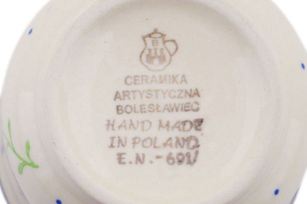 This Beautiful Bluebonnets 17 oz Bistro Mug was handmade and hand decorated in Boleslawiec, Poland by skilled artisans according to old traditional methods. This Polish stoneware is microwave, dishwasher, freezer, and oven safe up to 480°F. It does not contain lead or cadmium. It is part of the Beautiful Bluebonnets Collection.