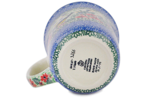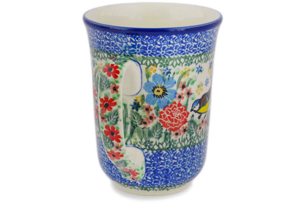 This Finch Garden 17 oz Bistro Mug was handmade and hand decorated in Boleslawiec, Poland by skilled artisans according to old traditional methods. This is a Polish pottery Signature Unikat, which means that it has been hand painted with both sponges and brushes and it is signed by the artist who painted it. Unikat pieces are the most intricate works of art. Larger Unikat items take hours of very careful work to finish. This Polish stoneware is microwave, dishwasher, freezer, and oven safe up to 480°F. It does not contain lead or cadmium. It is part of the Finch Garden Collection.