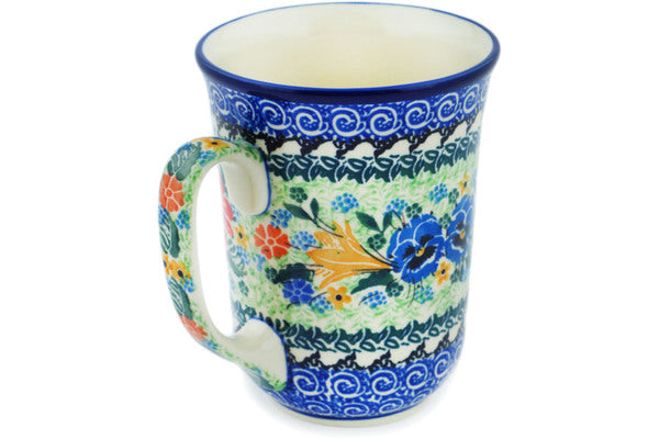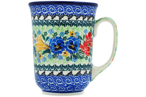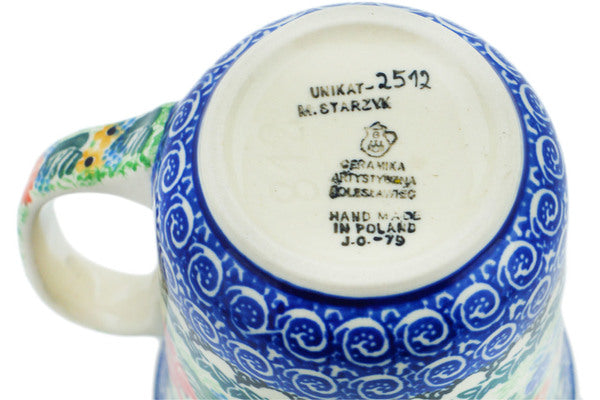 This Vibrant Bouquet 17 oz Bistro Mug was handmade and hand decorated in Boleslawiec, Poland by skilled artisans according to old traditional methods. This is a Polish pottery Signature Unikat, which means that it has been hand painted with both sponges and brushes and it is signed by the artist who painted it. Unikat pieces are the most intricate works of art. Larger Unikat items take hours of very careful work to finish. This Polish stoneware is microwave, dishwasher, freezer, and oven safe up to 480°F. It does not contain lead or cadmium. It is part of the Vibrant Bouquet Collection.