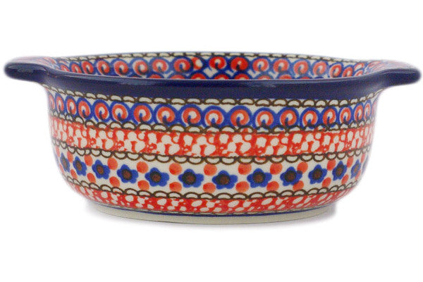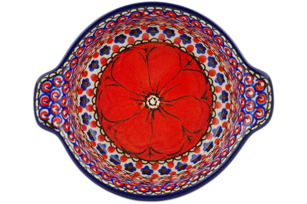 Bowl with Handles 6" Crimson Poppies Theme UNIKAT