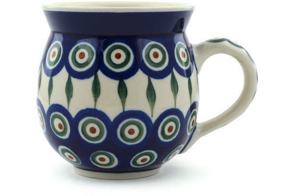 This Peacock Leaves 12oz Bubble Mug was handmade and hand decorated in Boleslawiec, Poland by skilled artisans according to old traditional methods. This Polish stoneware is microwave, dishwasher, freezer, and oven safe up to 480°F. It does not contain lead or cadmium. It is part of the Peacock Leaves Collection.