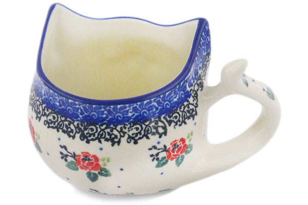 This Pasadena Delight 9 oz cat was handmade and hand decorated in Boleslawiec, Poland by skilled artisans according to old traditional methods. This Polish stoneware is microwave, dishwasher, freezer, and oven safe up to 480°F. It does not contain lead or cadmium. It is part of the Pasadena Delight Collection.