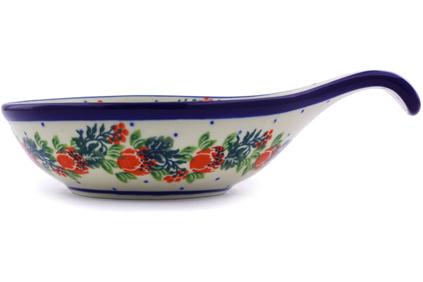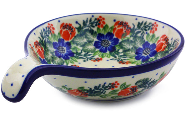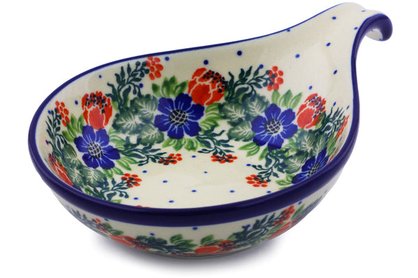 This Polish Wreath 7" Condiment Dish was handmade and hand decorated in Boleslawiec, Poland by skilled artisans according to old traditional methods. This Polish stoneware is microwave, dishwasher, freezer, and oven safe up to 480°F. It does not contain lead or cadmium. It is part of the Polish Wreath Collection.