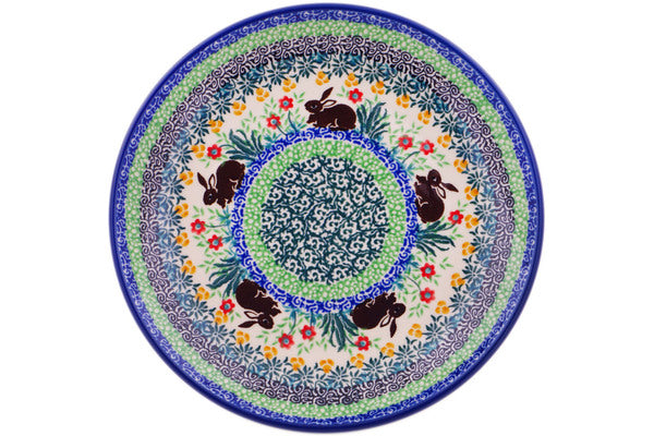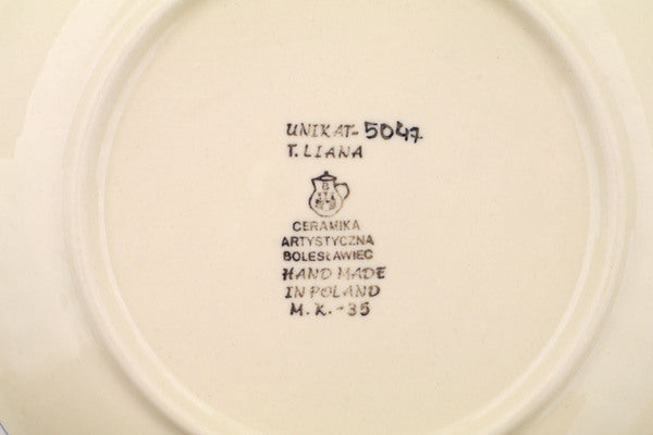 This Happy Hops 8" Dessert Plate was handmade and hand decorated in Boleslawiec, Poland by skilled artisans according to old traditional methods. This is a Polish pottery Signature Unikat, which means that it has been hand painted with both sponges and brushes and it is signed by the artist who painted it. Unikat pieces are the most intricate works of art. Larger Unikat items take hours of very careful work to finish. This Polish stoneware is microwave, dishwasher, freezer, and oven safe up to 480°F. It does not contain lead or cadmium. It is part of the Happy Hops Collection.