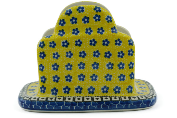 This Sunburst Daisies 7" Napkin Holder was handmade and hand decorated in Boleslawiec, Poland by skilled artisans according to old traditional methods. This Polish stoneware is microwave, dishwasher, freezer, and oven safe up to 480°F. It does not contain lead or cadmium. It is part of the Sunburst Daisies Collection.