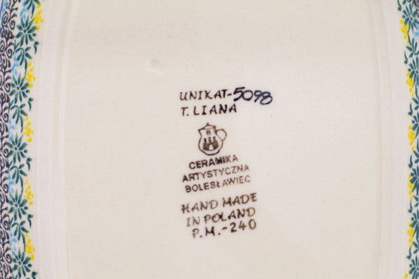This Relaxing Day 7" Platter was handmade and hand decorated in Boleslawiec, Poland by skilled artisans according to old traditional methods. This is a Polish pottery Signature Unikat, which means that it has been hand painted with both sponges and brushes and it is signed by the artist who painted it. Unikat pieces are the most intricate works of art. Larger Unikat items take hours of very careful work to finish. This Polish stoneware is microwave, dishwasher, freezer, and oven safe up to 480°F. It does not contain lead or cadmium. It is part of the Relaxing Day Collection.