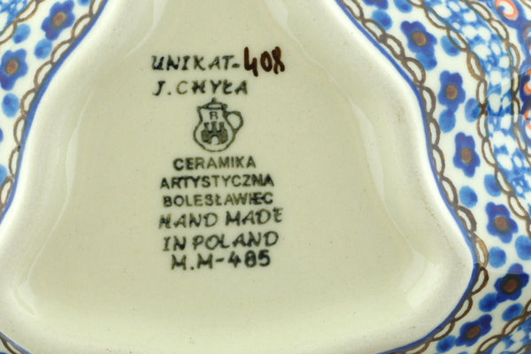 This Cobalt Poppies 8" Platter was handmade and hand decorated in Boleslawiec, Poland by skilled artisans according to old traditional methods. This is a Polish pottery Signature Unikat, which means that it has been hand painted with both sponges and brushes and it is signed by the artist who painted it. Unikat pieces are the most intricate works of art. Larger Unikat items take hours of very careful work to finish. This Polish stoneware is microwave, dishwasher, freezer, and oven safe up to 480°F. It does not contain lead or cadmium. It is part of the Cobalt Poppies Collection.