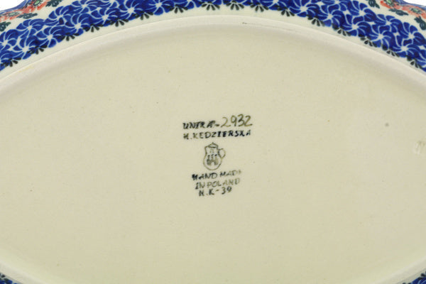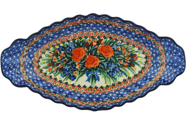 Platter with Handles 16" Blue Ribbon Roses Theme UNIKAT