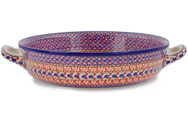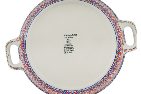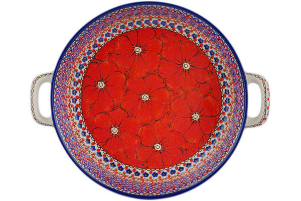 Round Baker with Handles 10-inch Medium Crimson Poppies Theme UNIKAT