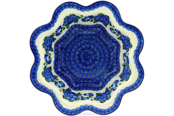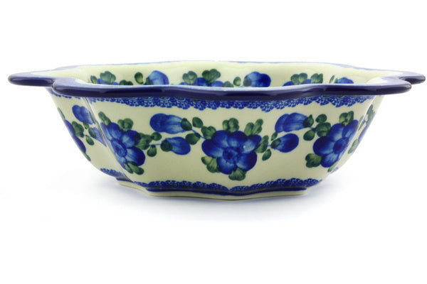 Scalloped Fluted Bowl 10" Blue Poppies Theme