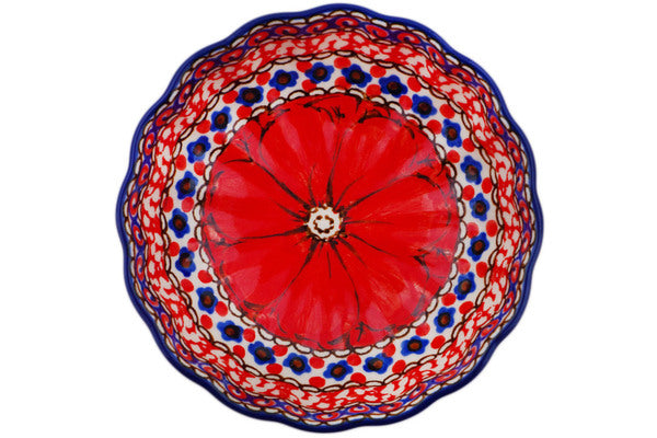 Scalloped Fluted Bowl 5" Crimson Poppies Theme UNIKAT