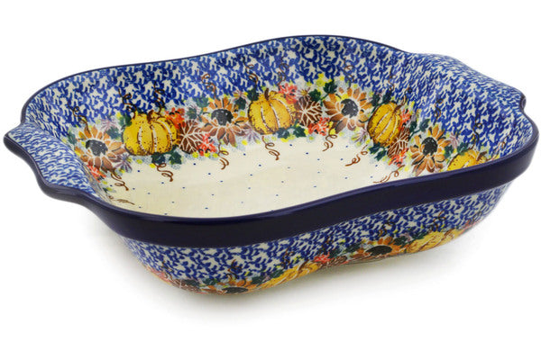 Square Baker with Handles 11" Autumn Falling Leaves Theme UNIKAT