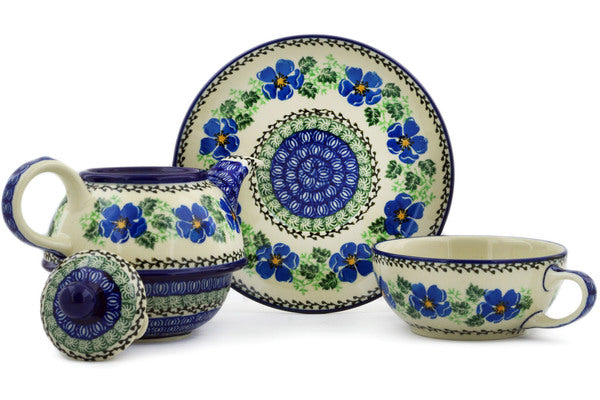 Home Ceramika Artystyczna Tea Set for One 22 oz Scarlet Pimpernel Flower Theme