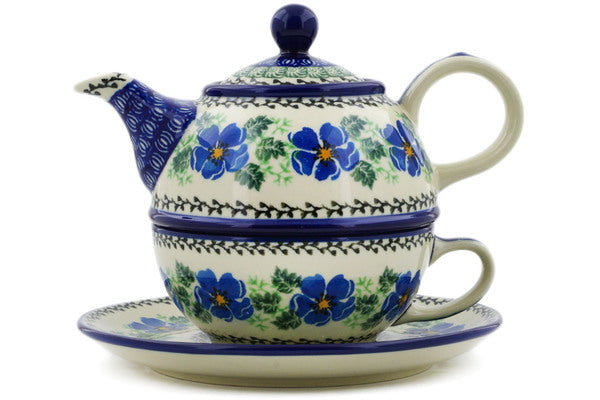 This Scarlet Pimpernel Flower 22 oz Tea Set for One was handmade and hand decorated in Boleslawiec, Poland by skilled artisans according to old traditional methods. This Polish stoneware is microwave, dishwasher, freezer, and oven safe up to 480°F. It does not contain lead or cadmium. It is part of the Scarlet Pimpernel Flower Collection.