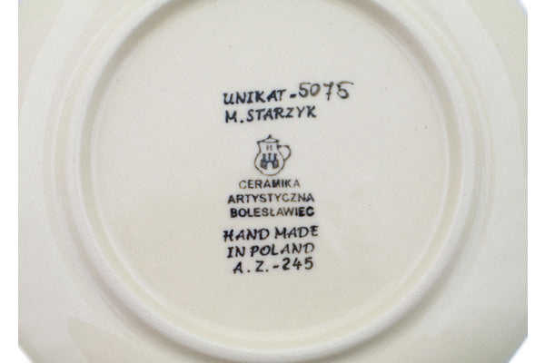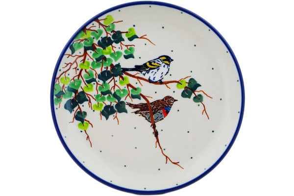 This Birds Of A Feather 6" Toast Plate was handmade and hand decorated in Boleslawiec, Poland by skilled artisans according to old traditional methods. This is a Polish pottery Signature Unikat, which means that it has been hand painted with both sponges and brushes and it is signed by the artist who painted it. Unikat pieces are the most intricate works of art. Larger Unikat items take hours of very careful work to finish. This Polish stoneware is microwave, dishwasher, freezer, and oven safe up to 480°F. It does not contain lead or cadmium. It is part of the Birds Of A Feather Collection.