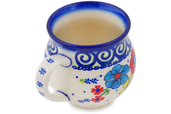 This Country Three 12 oz Bubble Mug was handmade and hand decorated in Boleslawiec, Poland by skilled artisans according to old traditional methods. This is a Polish pottery Signature Unikat, which means that it has been hand painted with both sponges and brushes and it is signed by the artist who painted it. Unikat pieces are the most intricate works of art. Larger Unikat items take hours of very careful work to finish. This Polish stoneware is microwave, dishwasher, freezer, and oven safe up to 480°F. It does not contain lead or cadmium. It is part of the Country Three Collection.