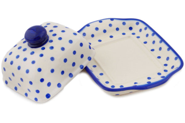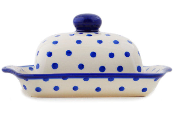 Butter Dish 8" Blue Polka Dot Theme
