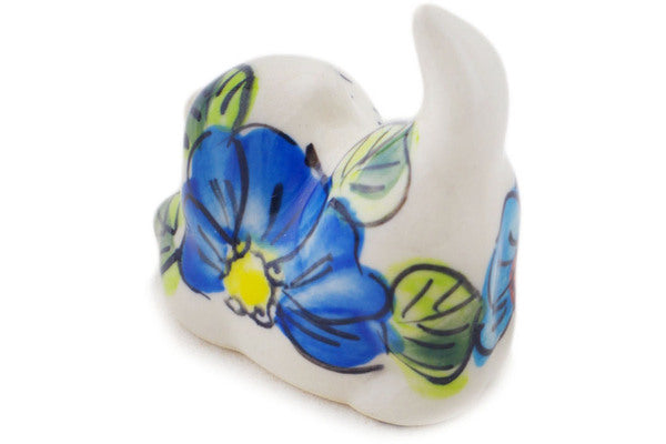 Cat Figurine 2" Bold Blue Poppies Theme UNIKAT