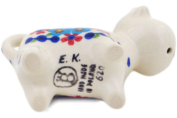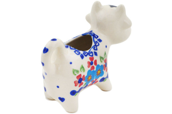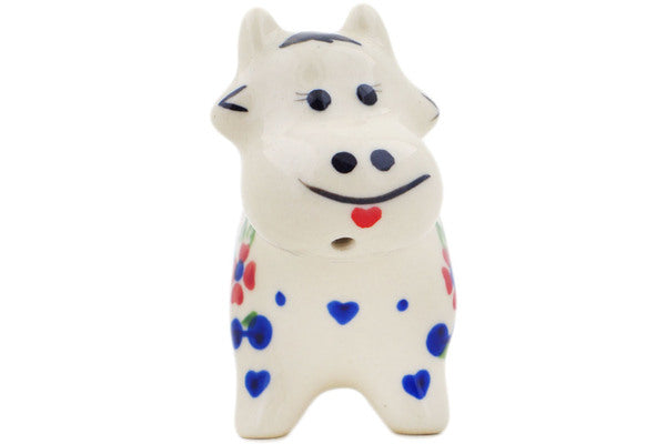 This Hearts And Flowers 2 oz Cow Shaped Creamer was handmade and hand decorated in Boleslawiec, Poland by skilled artisans according to old traditional methods. This Polish stoneware is microwave, dishwasher, freezer, and oven safe up to 480°F. It does not contain lead or cadmium. It is part of the Hearts And Flowers Collection.