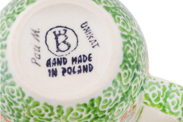 This Tulip Ring 10 oz Mug was handmade and hand decorated in Boleslawiec, Poland by skilled artisans according to old traditional methods. This Polish stoneware is microwave, dishwasher, freezer, and oven safe up to 480°F. It does not contain lead or cadmium. It is part of the Tulip Ring Collection.