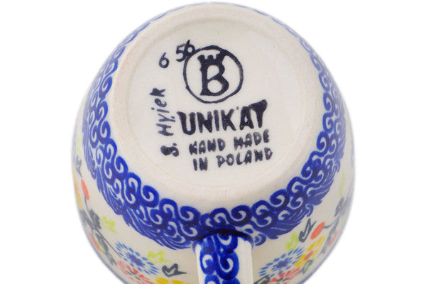This Pastel Spring Wreath 8 oz Mug was handmade and hand decorated in Boleslawiec, Poland by skilled artisans according to old traditional methods. This Polish stoneware is microwave, dishwasher, freezer, and oven safe up to 480°F. It does not contain lead or cadmium. It is part of the Pastel Spring Wreath Collection.