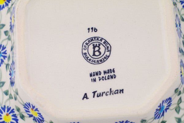 Octagonal Bowl 8" Blue Thistle Beauty Theme