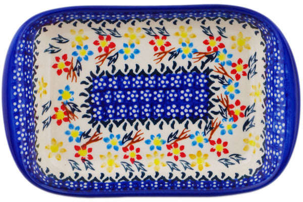 This Spring Flower Ring 7" Platter with Handles was handmade and hand decorated in Boleslawiec, Poland by skilled artisans according to old traditional methods. This Polish stoneware is microwave, dishwasher, freezer, and oven safe up to 480°F. It does not contain lead or cadmium. It is part of the Spring Flower Ring Collection.