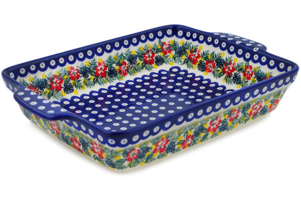 Rectangular Baker with Handles 15" Tropical Peacock Theme UNIKAT