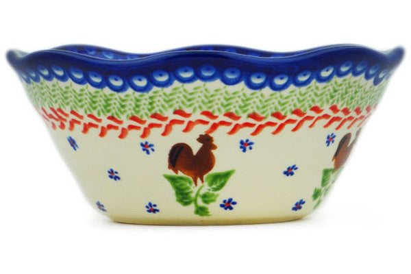 Scalloped Fluted Bowl 7" Spring Rooster Theme