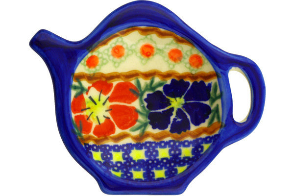 This Paradise Poppy 4" Tea Bag or Lemon Plate was handmade and hand decorated in Boleslawiec, Poland by skilled artisans according to old traditional methods. This Polish stoneware is microwave, dishwasher, freezer, and oven safe up to 480°F. It does not contain lead or cadmium. It is part of the Paradise Poppy Collection.