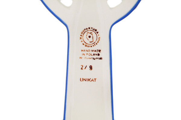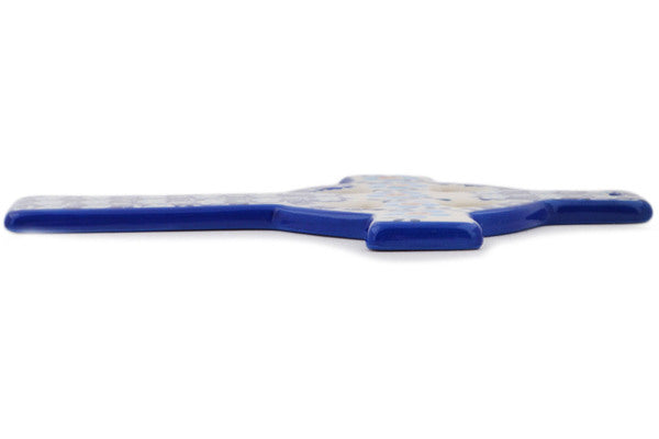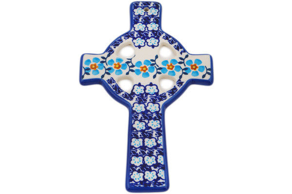 This Blue Chain 9" Cross was handmade and hand decorated in Boleslawiec, Poland by skilled artisans according to old traditional methods. This is a Polish pottery Signature Unikat, which means that it has been hand painted with both sponges and brushes and it is signed by the artist who painted it. Unikat pieces are the most intricate works of art. Larger Unikat items take hours of very careful work to finish. This Polish stoneware is microwave, dishwasher, freezer, and oven safe up to 480°F. It does not contain lead or cadmium. It is part of the Blue Chain Collection.