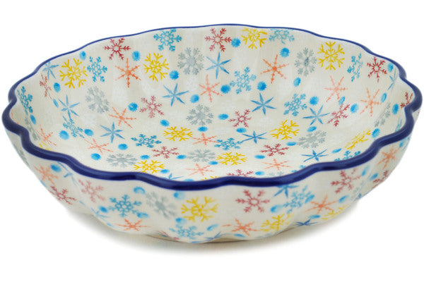 Fluted Bowl 9" Vintage Snow Fall Theme UNIKAT