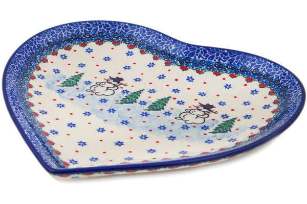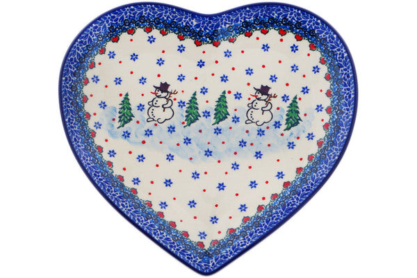 Heart Shaped Platter 9" Dancing Snowman Theme UNIKAT
