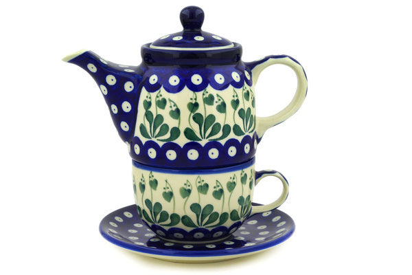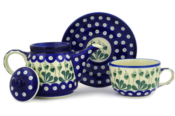 Tea Set for One 17 oz Bleeding Heart Peacock Theme