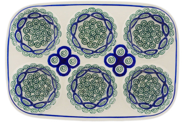 Muffin Pan 11" Green Peacock Swirl Theme