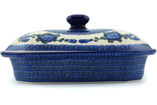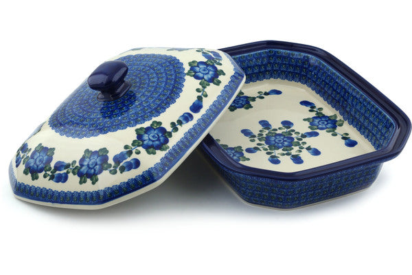 Dish with Cover 12" Blue Poppies Theme