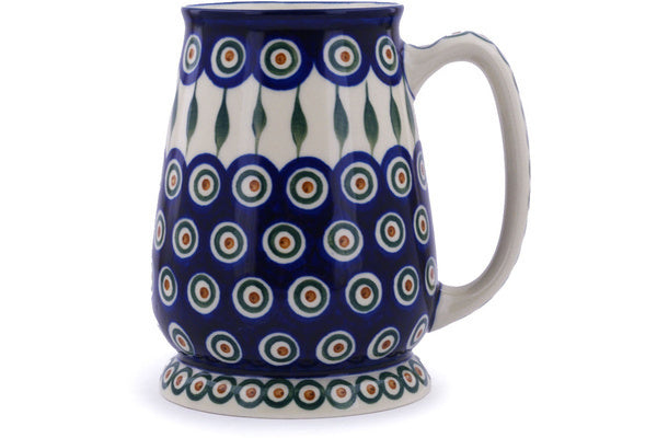 Beer Mug 34 oz Peacock Leaves Theme
