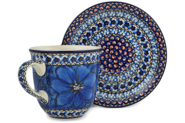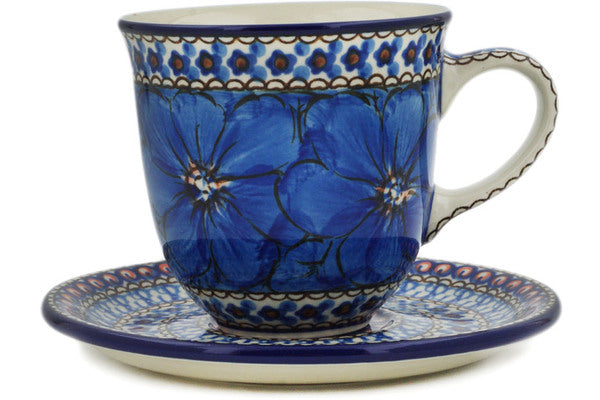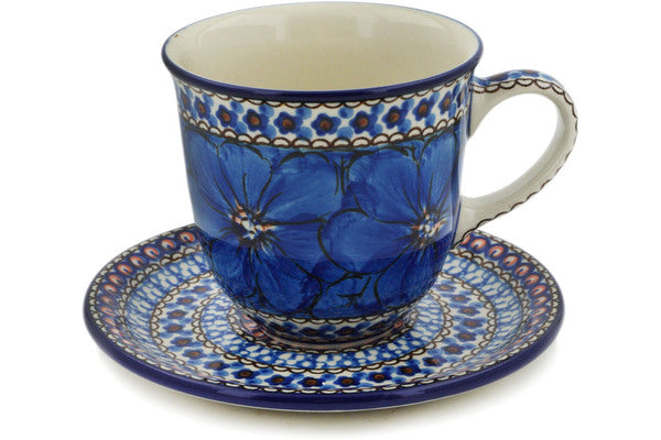 Cup with Saucer 10 oz Cobalt Poppies Theme UNIKAT