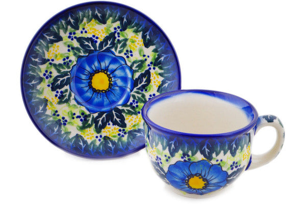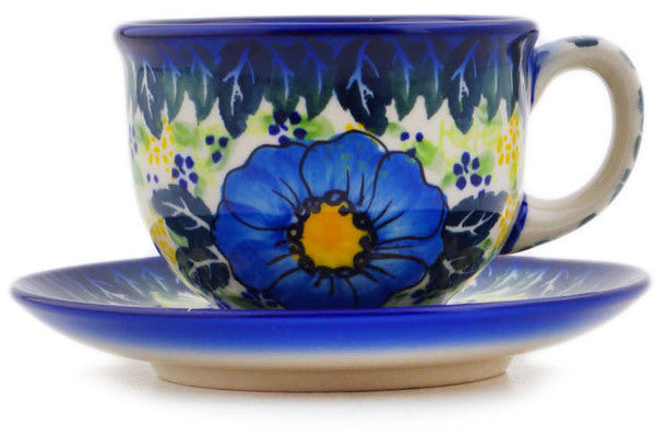 Cup with Saucer Blue Happy Fields Theme UNIKAT
