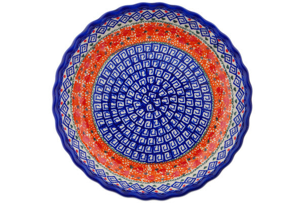 Fluted Pie Dish 10" Grecian Fire Tulips Theme