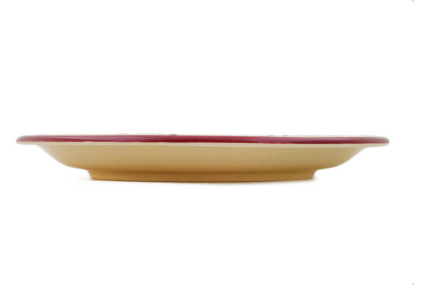 This Marry Me Maroon 10" Plate was handmade and hand decorated in Boleslawiec, Poland by skilled artisans according to old traditional methods. This Polish stoneware is microwave, dishwasher, freezer, and oven safe up to 480°F. It does not contain lead or cadmium. It is part of the Marry Me Maroon Collection.