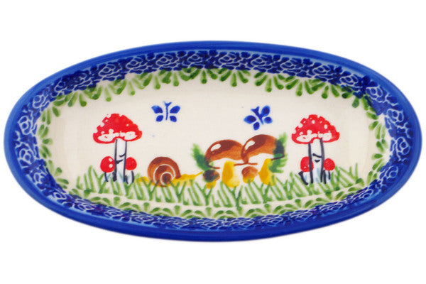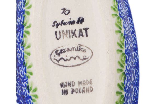 This Gardens In Poland 7" Condiment Dish was handmade and hand decorated in Boleslawiec, Poland by skilled artisans according to old traditional methods. This Polish stoneware is microwave, dishwasher, freezer, and oven safe up to 480°F. It does not contain lead or cadmium. It is part of the Gardens In Poland Collection.