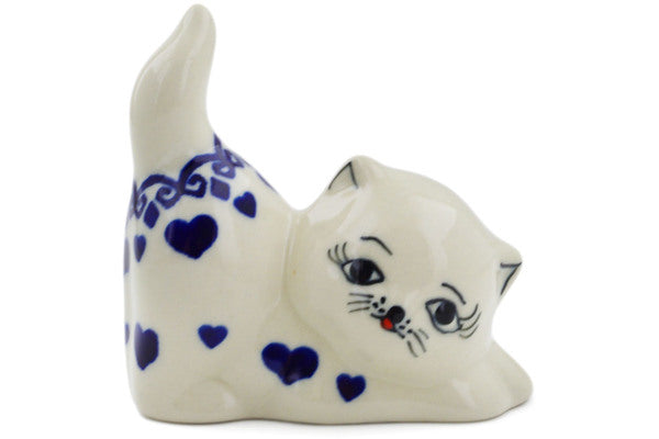 Cat Figurine 3" Blue Valentine Hearts Theme