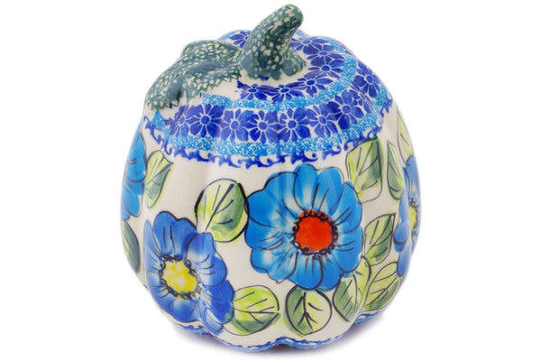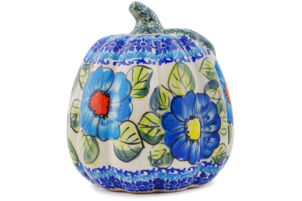 Pumpkin Figurine 6" Bold Blue Poppies Theme UNIKAT