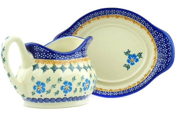 Gravy Boat with Saucer Blue Cornflower Theme