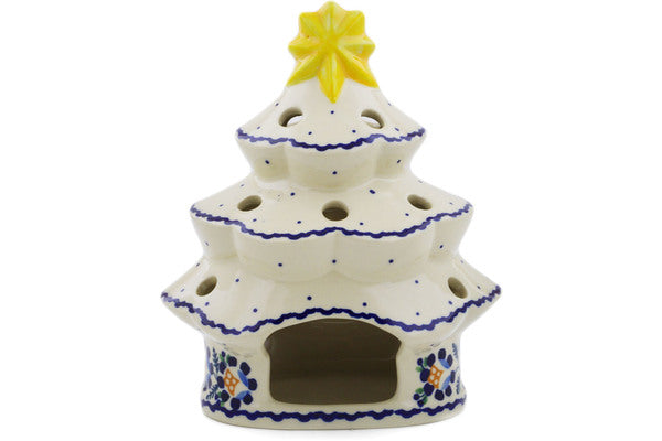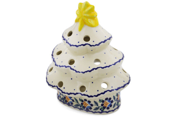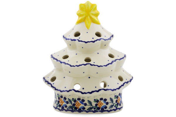 Christmas Tree Candle Holder 7" Orange And Blue Flower Theme