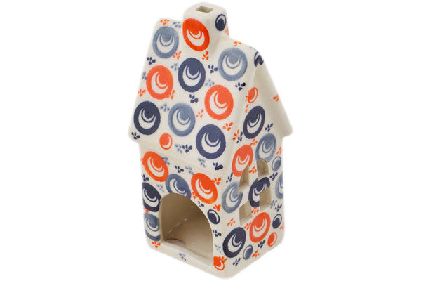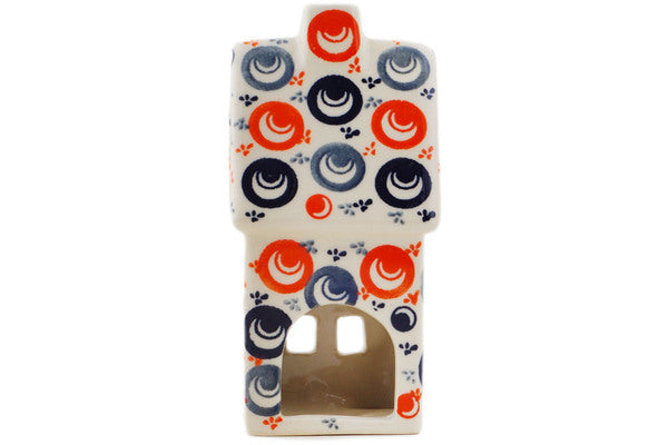 House Shaped Candle Holder 6" Red Peacock Eye Theme
